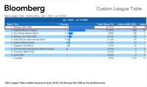 بنك مصر يحصل على المركز الأول على مستوى جمهورية مصر العربية في تسويق القروض المشتركة (Bookrunner) وفقاً لمؤسسة بلومبرج العالمية